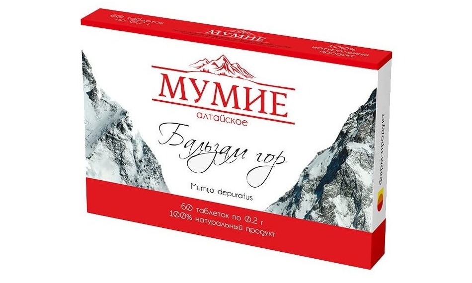 - Właściwości: 100% naturalne oczyszczone mumio z Ałtaju, 80 aktywnych komponentów, z aminokwasami i minerałami