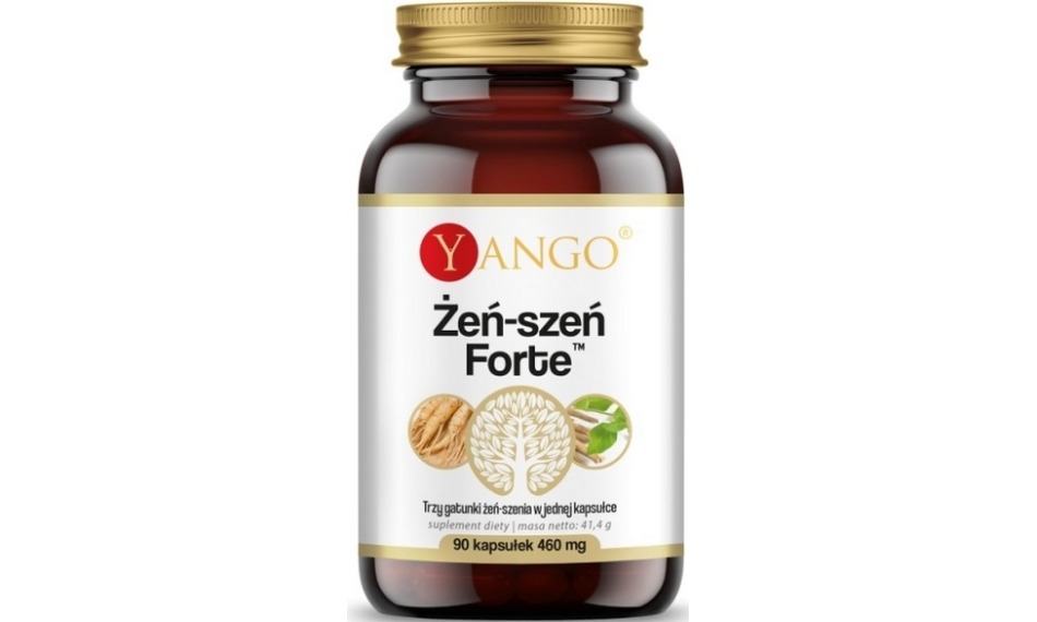 Yango Żeń-szeń Forte to zaawansowany suplement łączący trzy gatunki żeń-szenia: właściwy (Panax ginseng), syberyjski (Eleutherococcus senticosus) i indyjski (Withania somnifera - ashwaganda). Każdy gatunek różni się właściwościami i wpływem na organizm, tworząc kompleksową formułę wspierającą sprawność umysłową, odporność i adaptację do stresu.